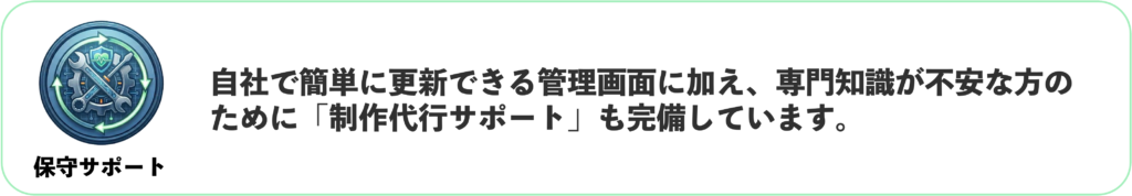 A. はい、問題ありません。専門知識がなくても、ブログを更新するような感覚で管理画面から即座に修正や更新が可能です。